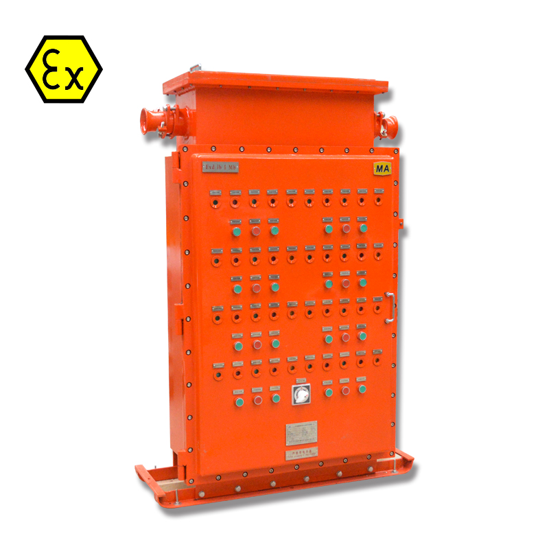 適用范圍適用于具有爆炸性危險(xiǎn)氣體(甲烷)和煤塵的礦井中。在交流50Hz,額定工作電壓1140V/660V/380V條件下,能直接控制額定電流在400A以內(nèi)的鼠籠型三相異步電動(dòng)機(jī),具有短路、過載、斷相、漏電閉鎖等保護(hù)功能,適用于煤礦井下電機(jī)的控制。本電控柜主要用于防爆液壓機(jī)械閘、輸送機(jī)、皮帶機(jī)、給料機(jī)、破碎機(jī)、水泵、風(fēng)機(jī)等設(shè)備的控制;有變頻、軟起等驅(qū)動(dòng)方式。